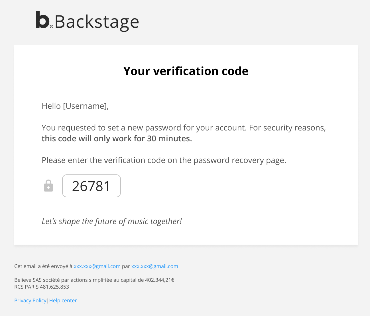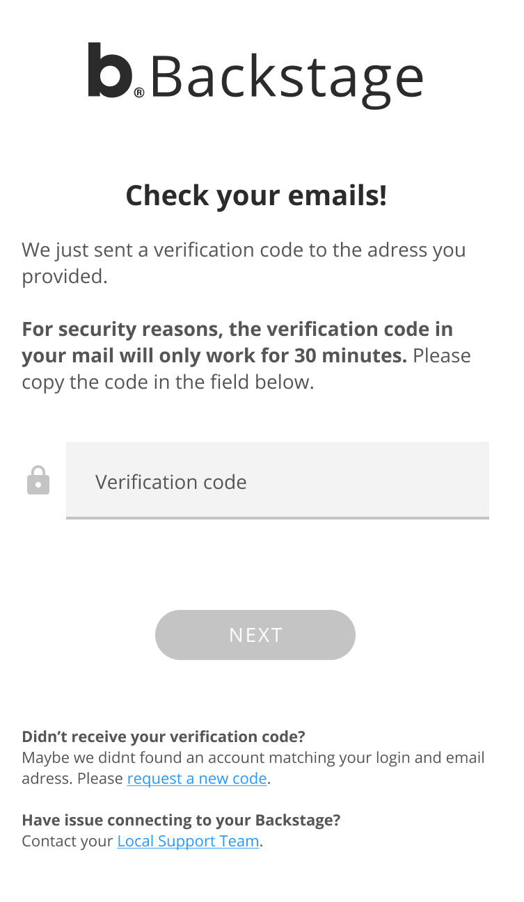 - Jika login Anda terkait dengan akun Backstage, maka Anda akan menerima email berisi kode verifikasi: